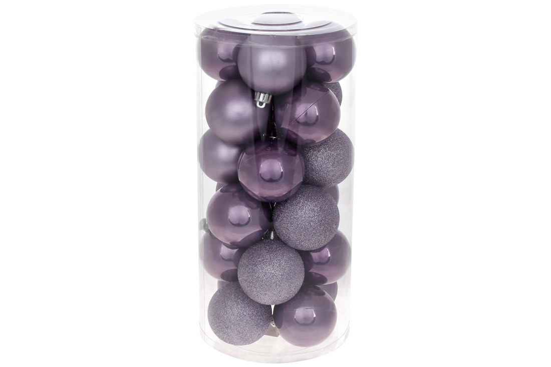 Набір ялинкових куль 6см, 24шт, колір - лаванда, 12шт - перламутр, по 6шт - глітер, матовий