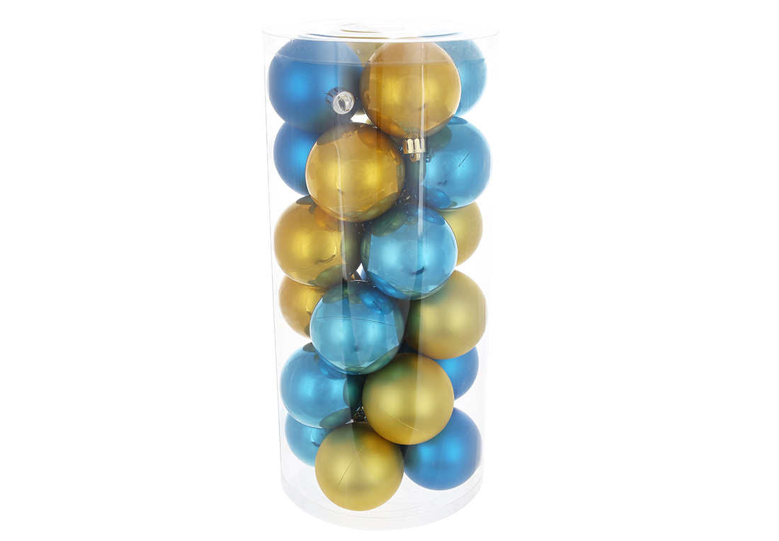 Набір ялинкових куль 6см, 24шт; колір - сині із золотими, 12шт - матові, 12шт перламутрові