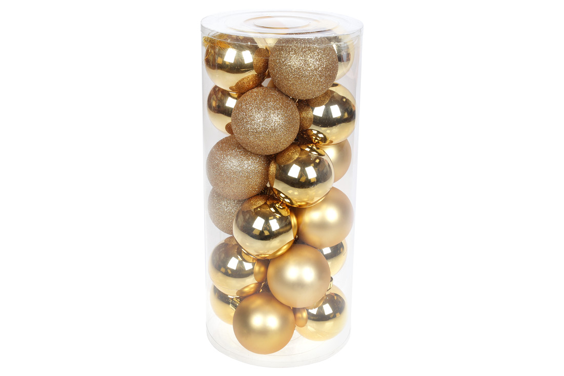 Набір ялинкових куль 6см, 24шт; колір - золото, 12шт - глянець, по 6шт - гліттер, матовий