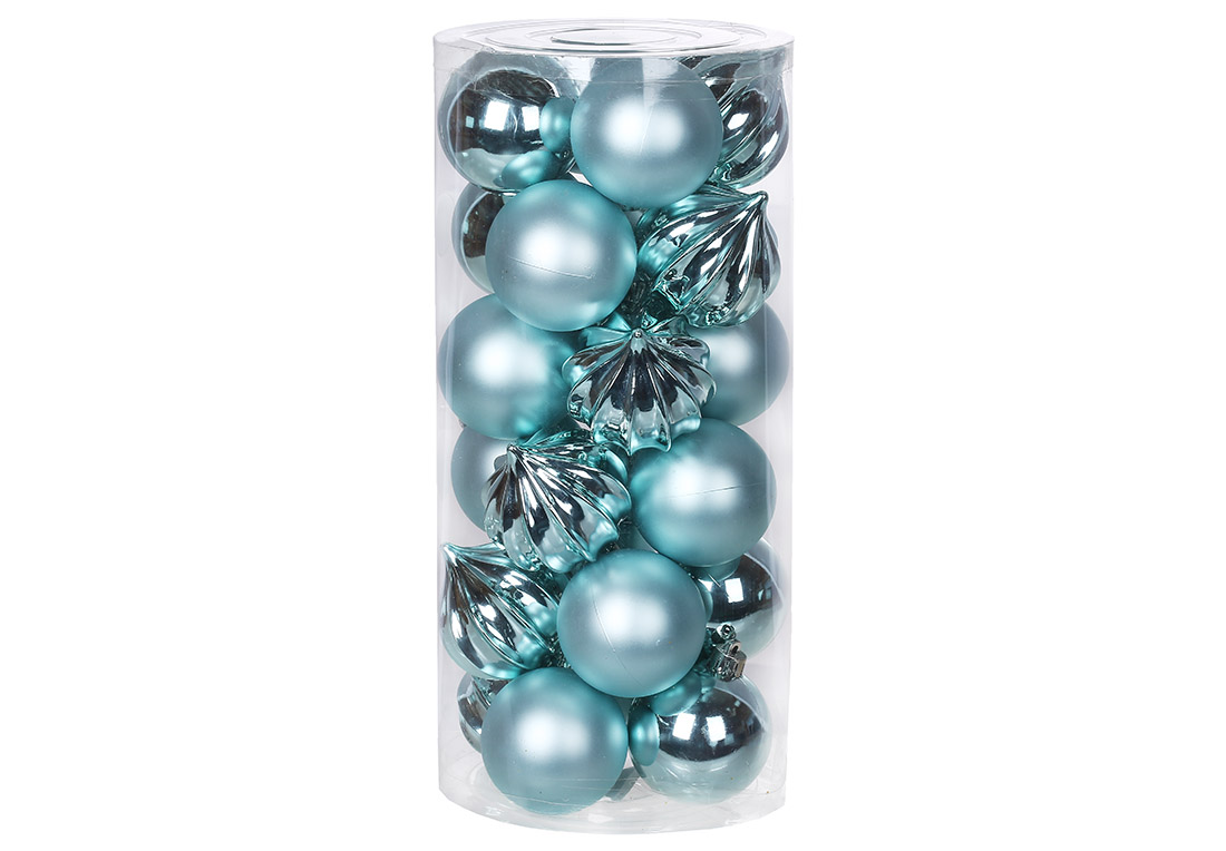 Набір ялинкових куль 6см, колір - блакитний, 24шт: 6шт - рельєф глянець, 6шт - глянець, 6шт-матовий, 6шт-гліттер