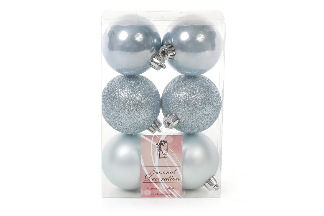 Набір ялинкових куль 6см, колір - блакитний, 6шт: матовий, перламутр, глітер - по 2шт