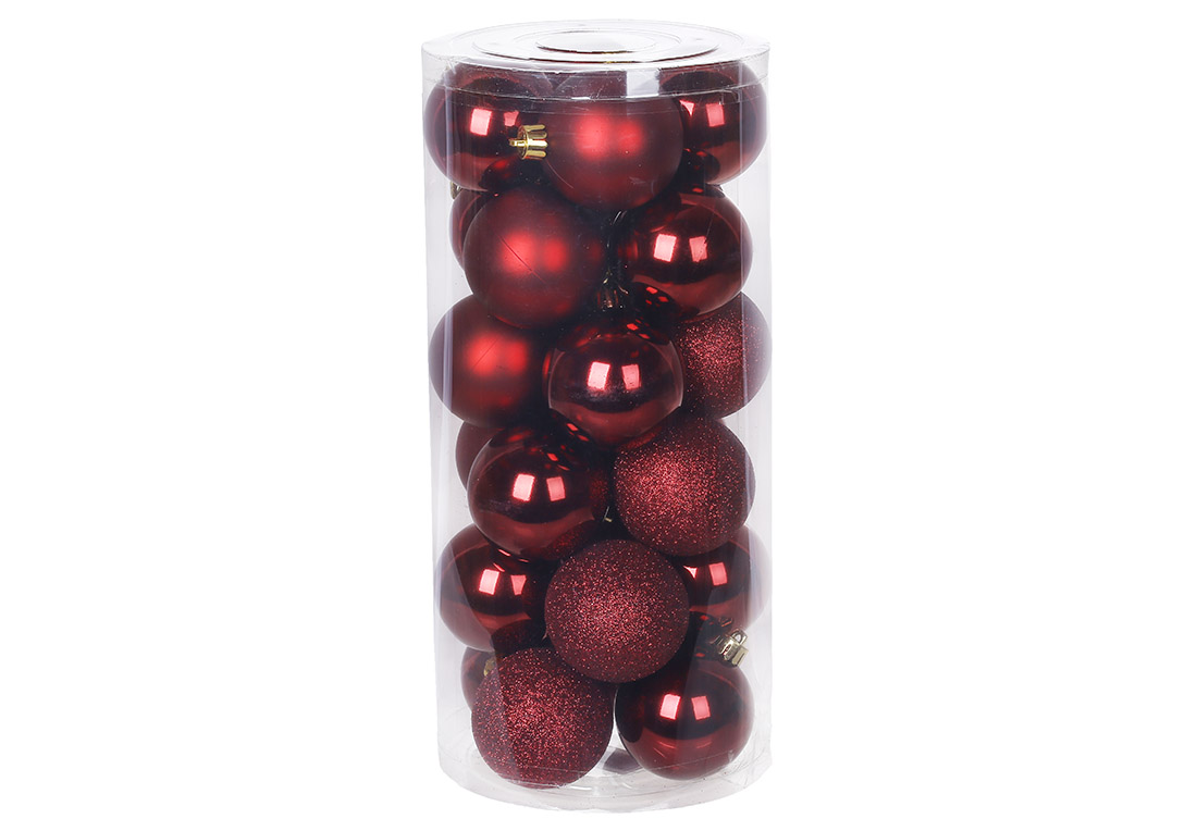 Набір ялинкових куль 6см, колір - марсала, 24шт: 12шт - глянець, 6шт - матовий, 6шт - гліттер