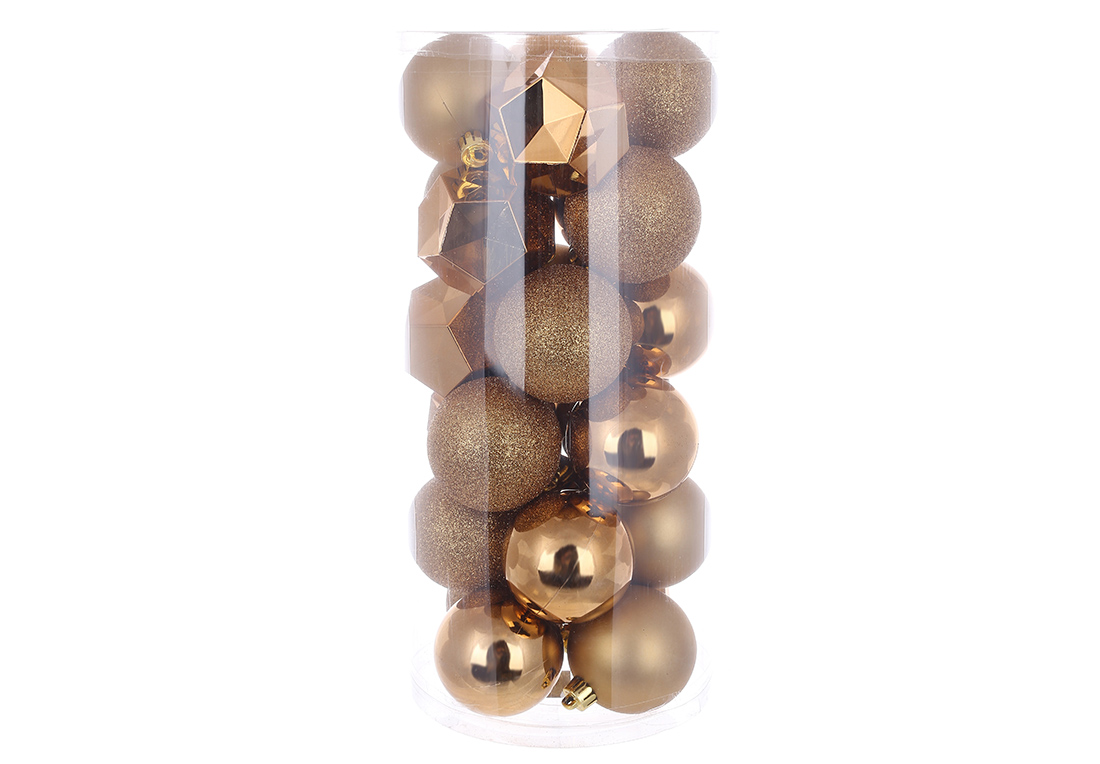 Набір ялинкових куль 6см, колір - мокко, 24шт: по 6шт -рельєф глянець, глянець, матовий, гліттер