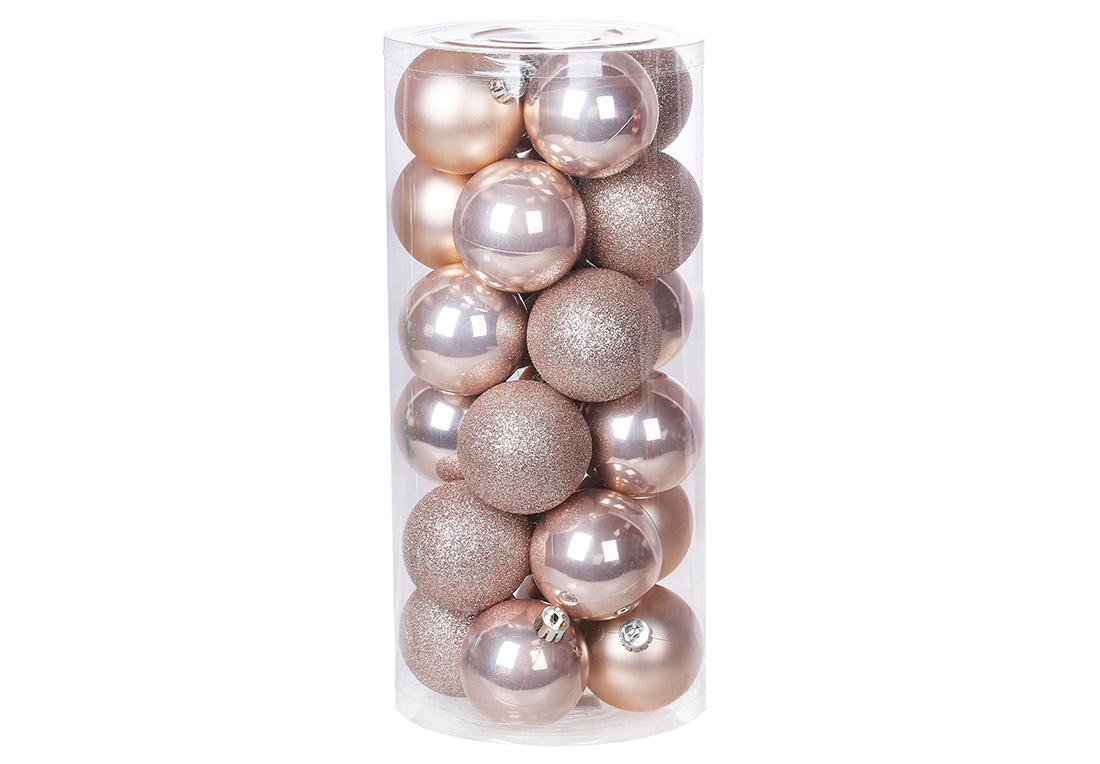 Набір ялинкових куль 6см, колір - пудровий; 12шт - перламутр, 6шт - матовий, 6шт - гліттер