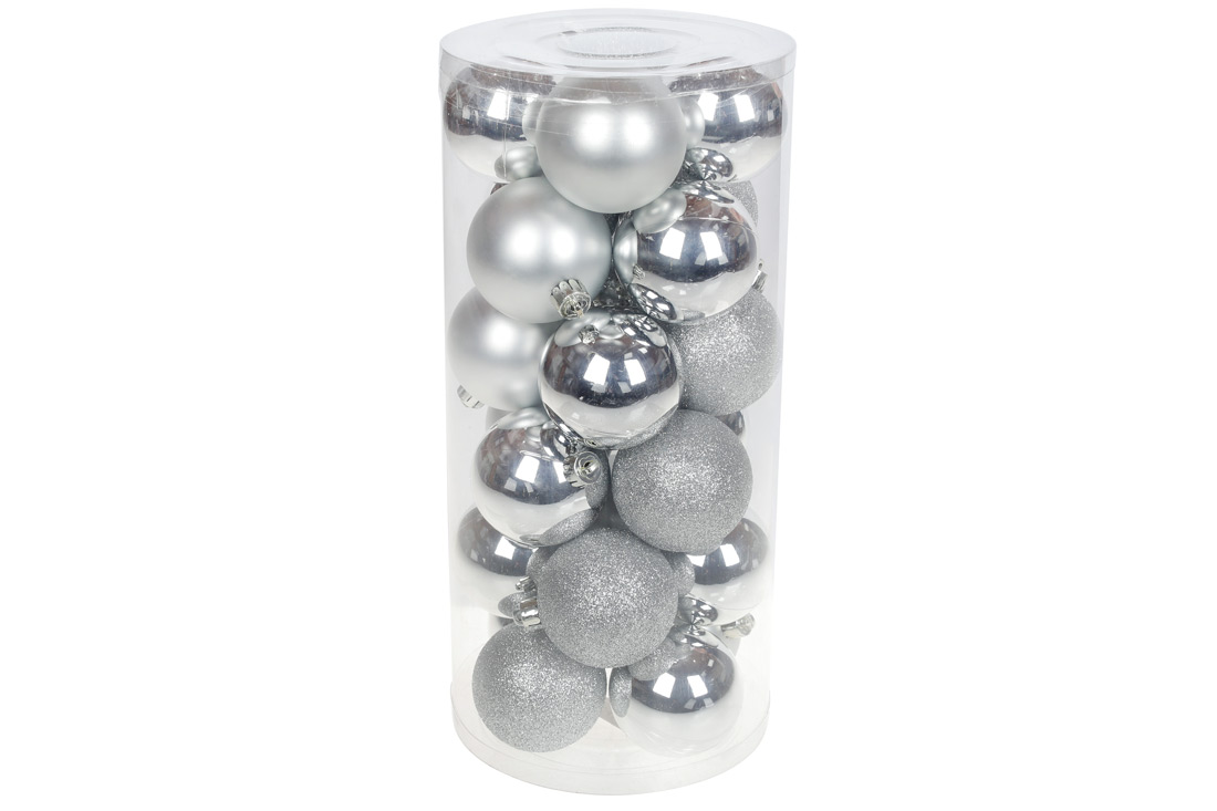 Набір ялинкових куль 6см, колір - срібло, 24шт: 12шт - глянець, по 6шт - гліттер, матовий