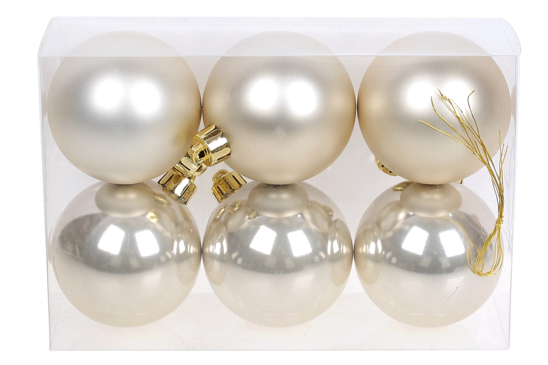Набір ялинкових куль 6см, колір - шампань, 6шт: перламутр, матовий
