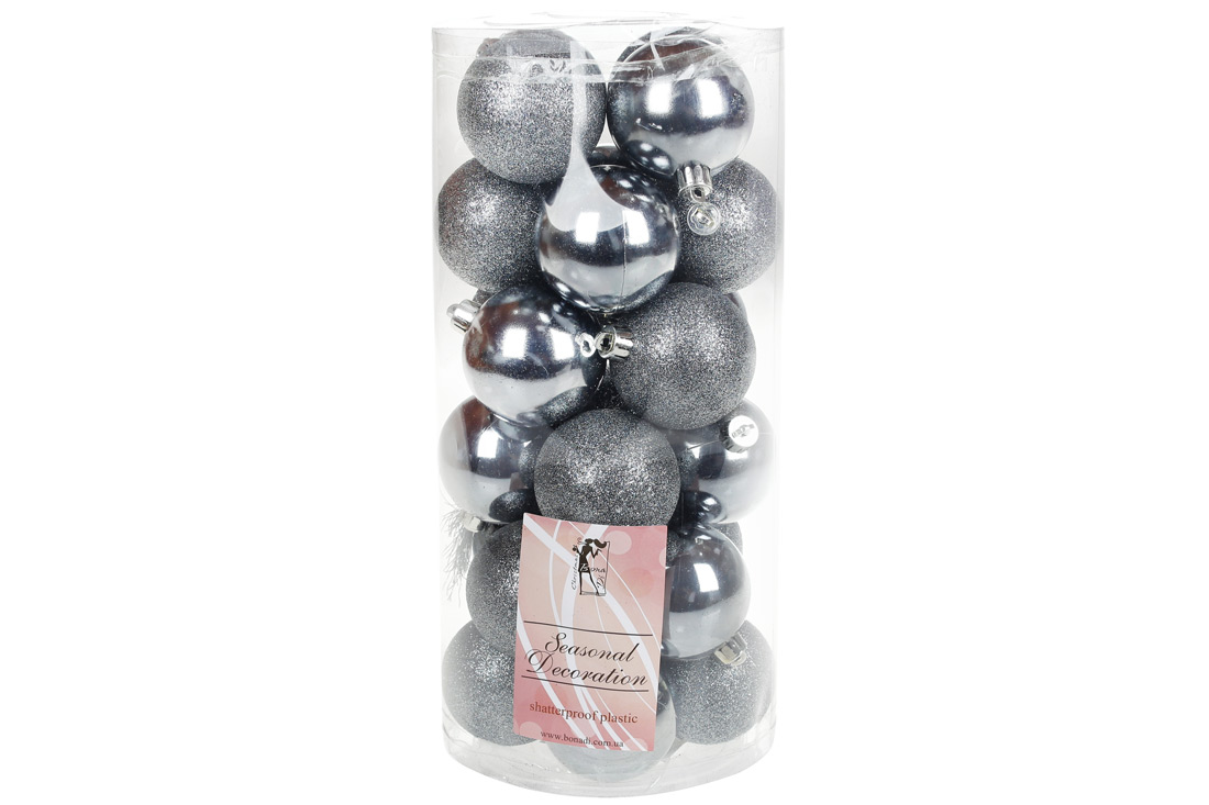 Набір ялинкових куль 6см, колір - сталевий синій, 24шт: гліттер, глянець - по 12шт