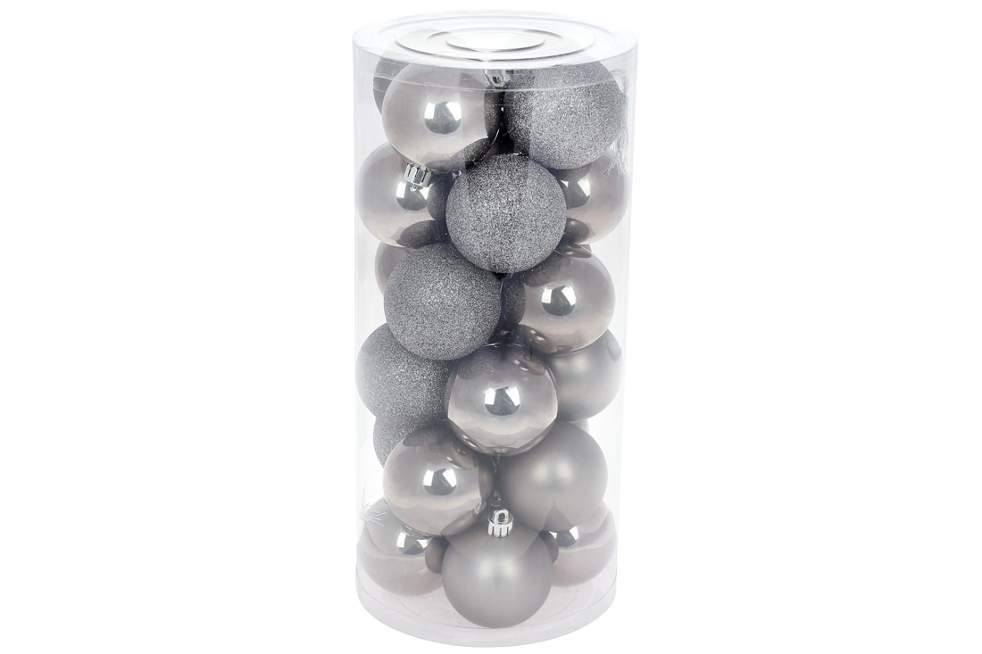 Набір ялинкових куль 6см, колір - теплий сірий, 24шт: 12шт - перламутр, по 6шт - гліттер, матовий