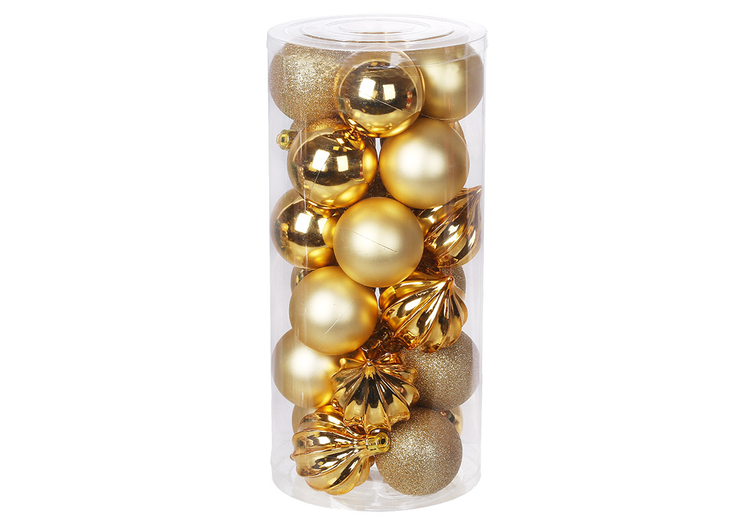 Набір ялинкових куль 6см, колір - золото, 24шт: 6шт - рельєф глянець, 6шт - глянець, 6шт - матовий, 6шт - гліттер