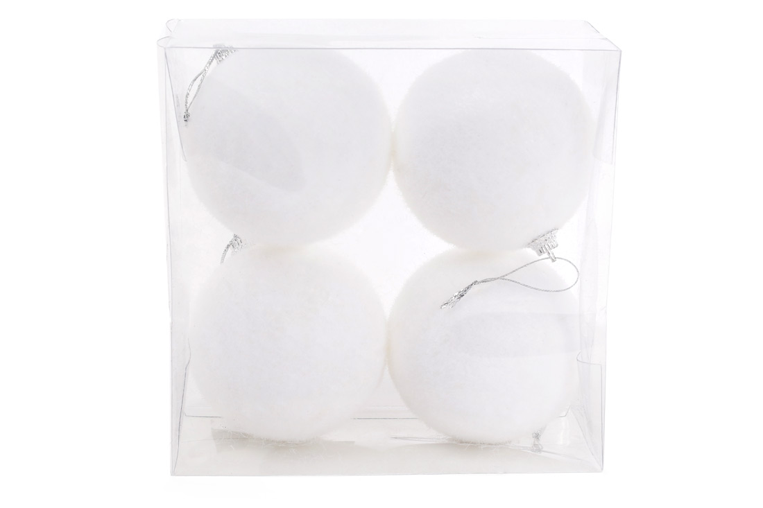 Набір ялинкових куль, 8см, 4шт, колір - білий сніг