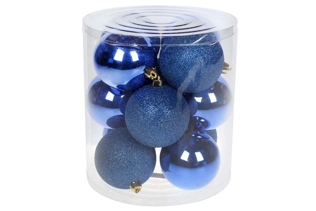 Набір ялинкових куль 8см, колір - королівський синій, 12шт: гліттер, глянець - по 6шт