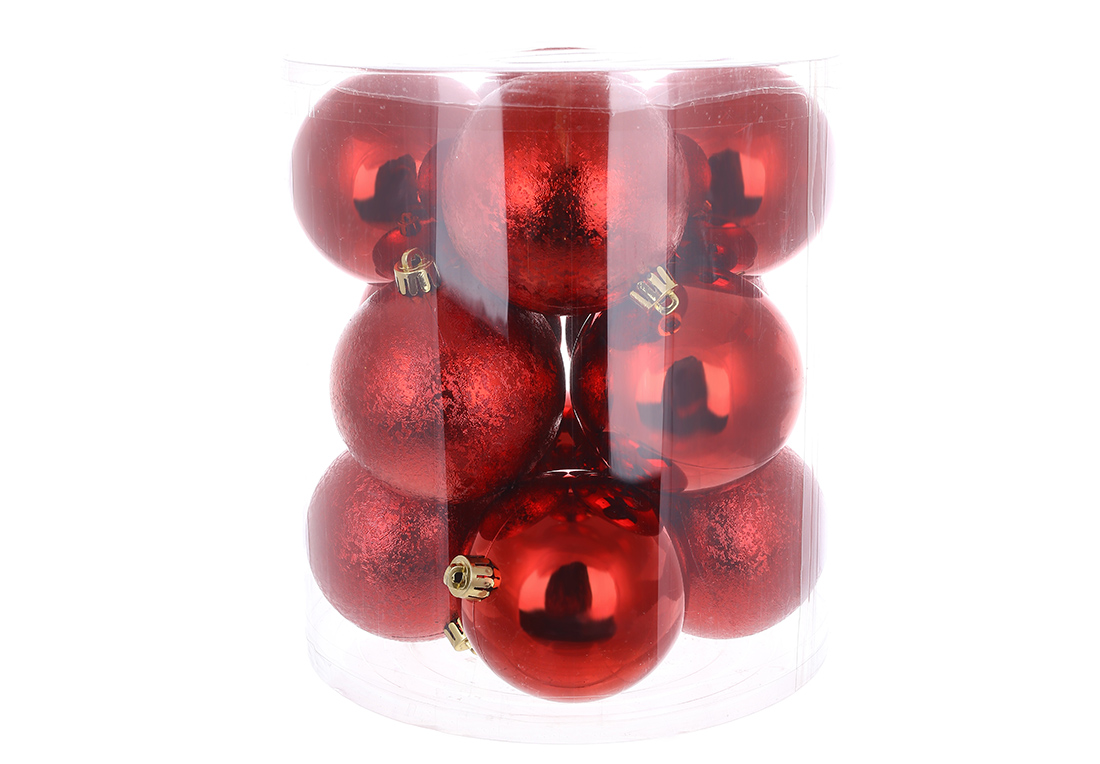 Набір ялинкових куль 8см, колір - червоний, 12шт: 6шт - глянець, 6шт - фрост