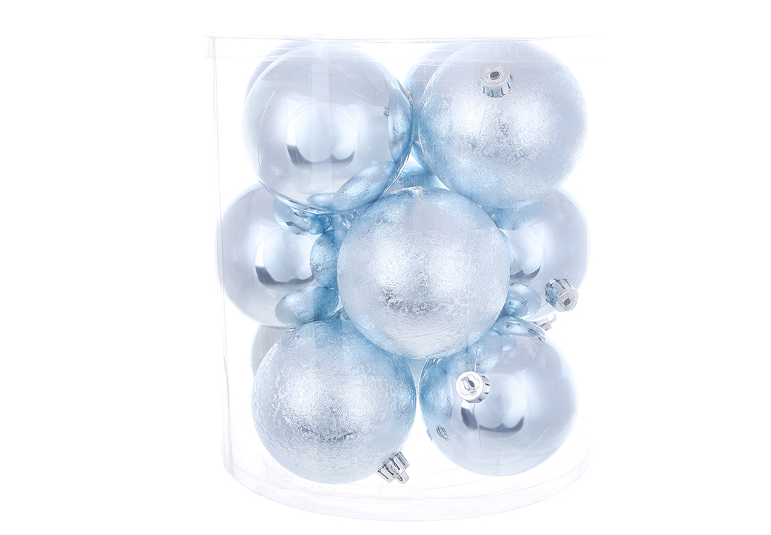 Набір ялинкових куль 8см, колір - морозний блакитний, 12шт: 6шт - глянець, 6шт - фрост