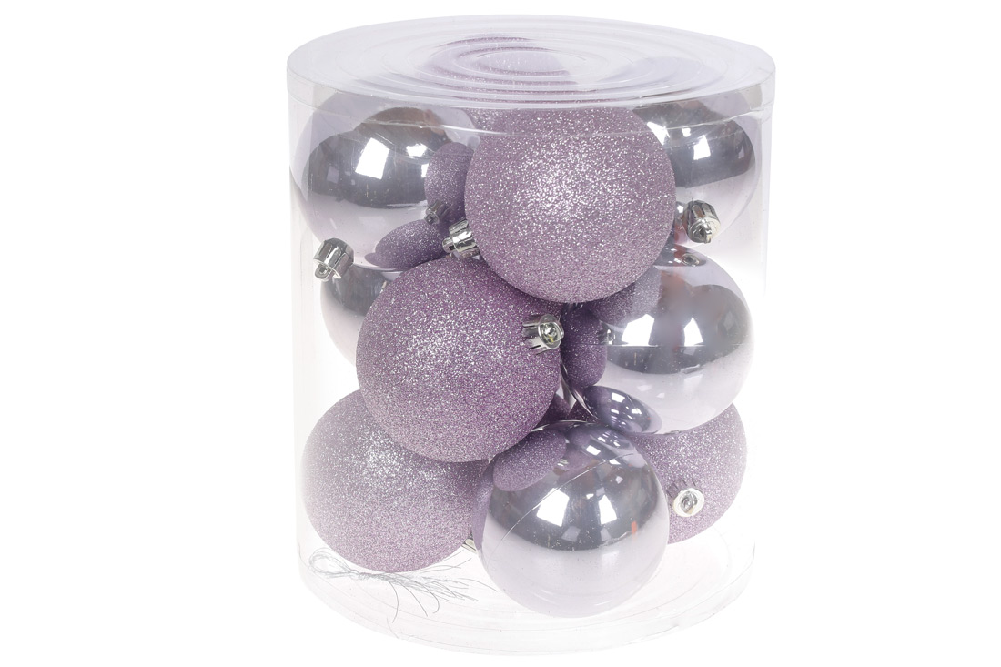 Набір ялинкових куль 8см, колір - ніжно-ліловий, 12шт: гліттер, перламутр - по 6шт
