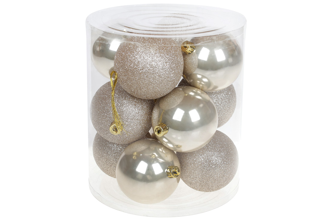 Набір ялинкових куль 8см, колір - шампань, 12шт: гліттер, перламутр - по 6шт