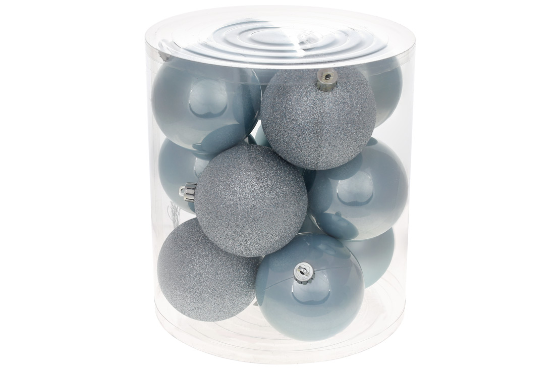 Набір ялинкових куль 8см, колір - синій туман, 12шт: 6шт - перламутр, по 3шт - матовий та глянець