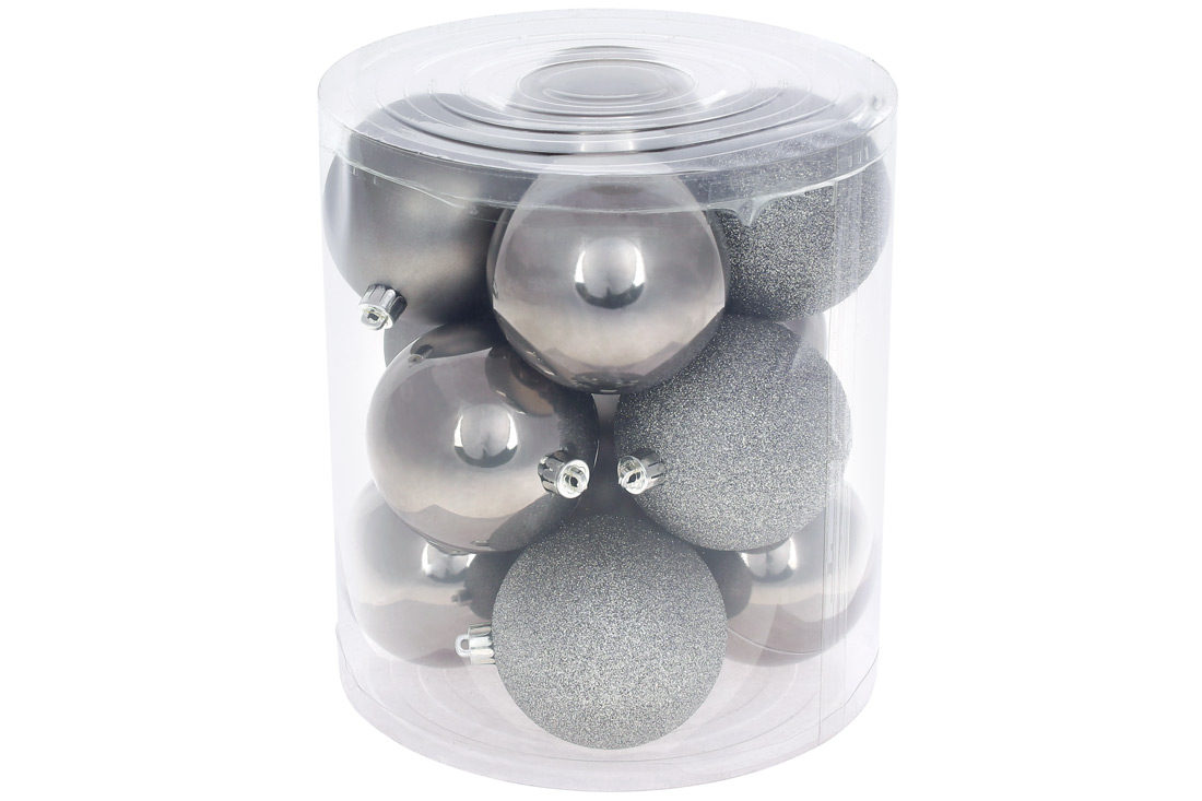 Набір ялинкових куль 8см, колір - теплий сірий, 12шт: перламутр - 6шт, матовий та глянець - по 3шт