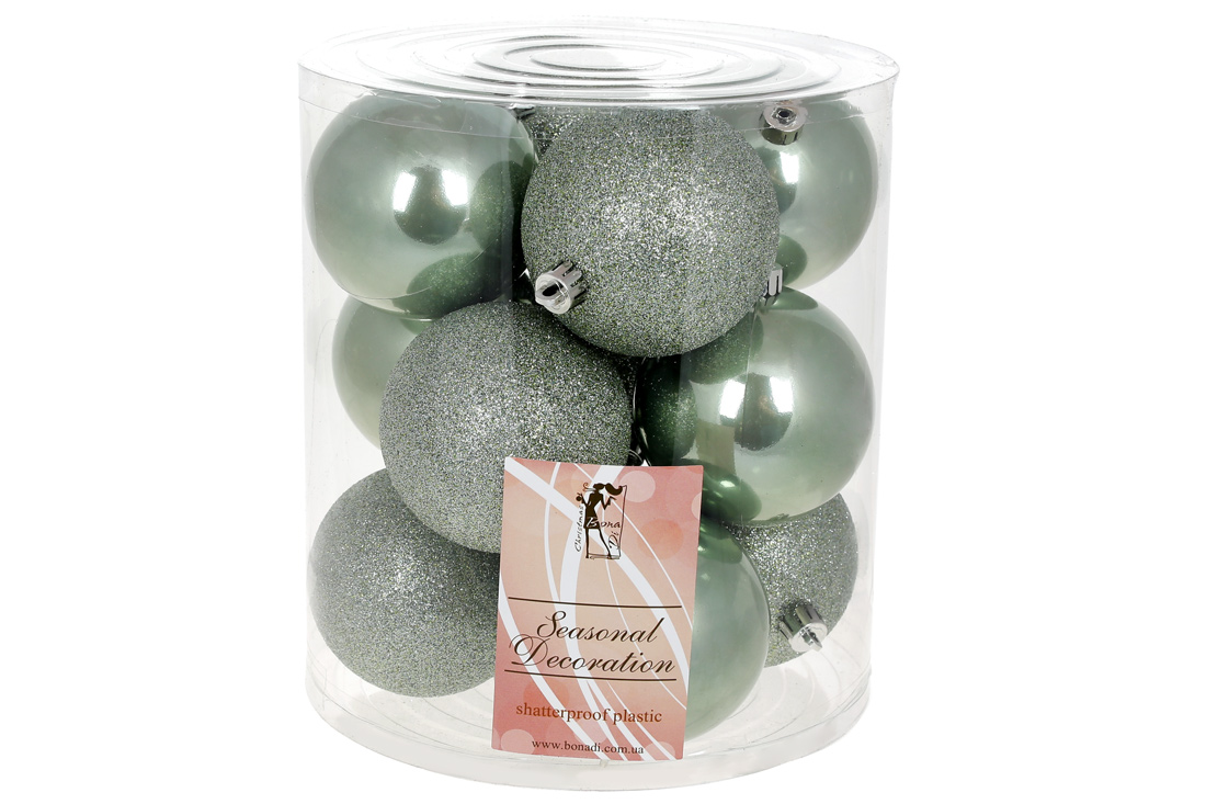 Набір ялинкових куль 8см, колір - зелена шавлія, 12шт: гліттер, перламутр - по 6шт