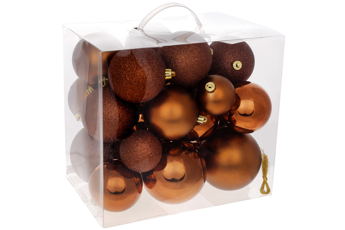 Набір ялинкових куль "Аромат кориці" 26 шт, 10см, 8см, 6см: перламутр, матовий, гліттер