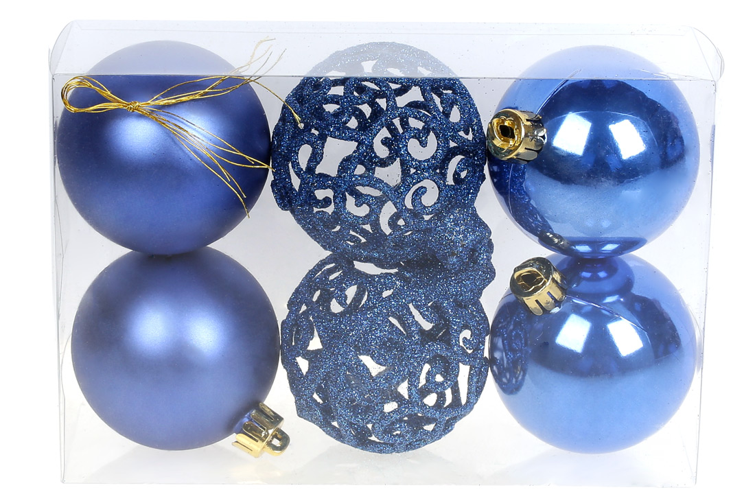 Набір ялинкових куль Ажур, 6 см, колір - королівський синій, 6шт: 2шт - матовий, 2шт - глянець, 2шт - ажур гліттер