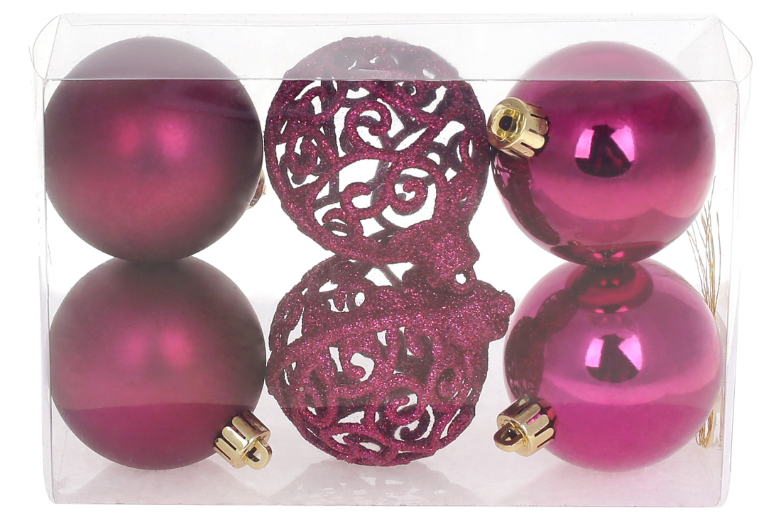 Набір ялинкових куль Ажур, 6см, колір - магнолія, 6шт: 2шт - матовий, 2шт - глянець, 2шт - ажур гліттер