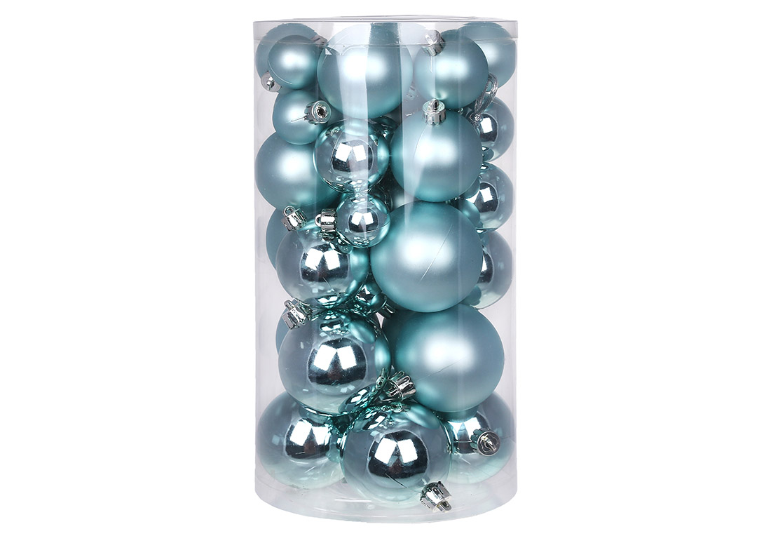 Набір ялинкових куль, колір - блакитний, 40шт - 6см, 5см, 4см, 3см: 5шт - глянець, 5шт - матовий для кожного розміру