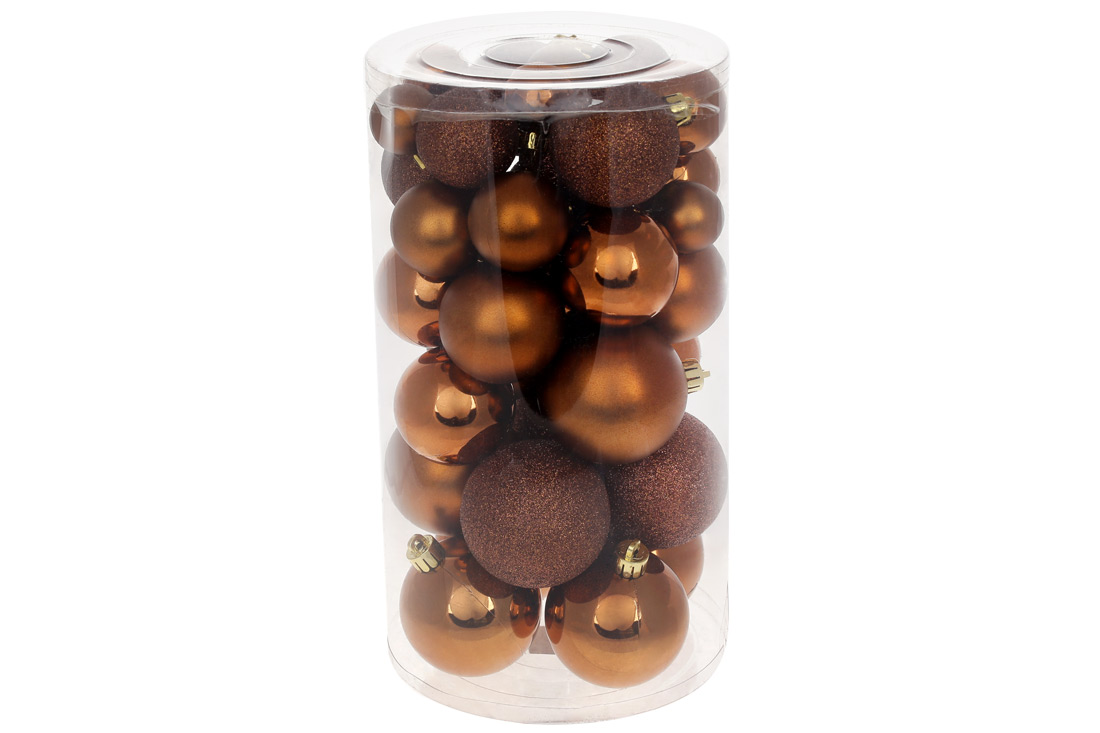 Набір ялинкових куль, колір - кориця, 40шт - 6см, 5см, 4см, 3см: 4шт - перламутр, 3шт - матовий, 3шт - гліттер для кожного розміру