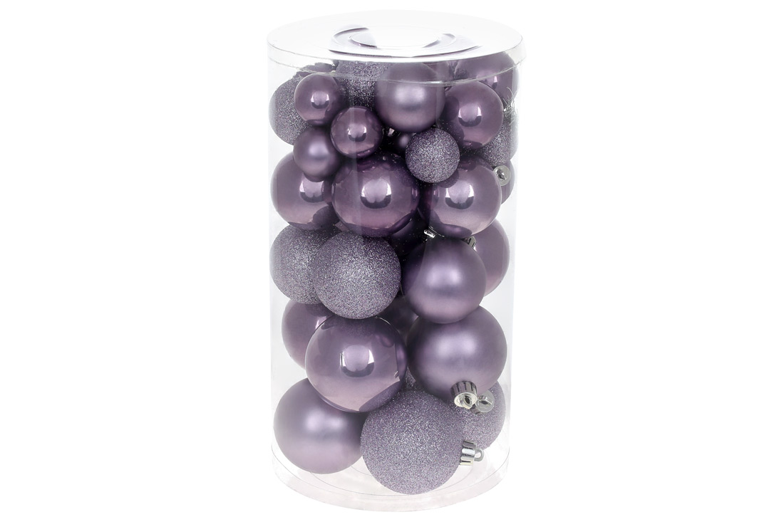 Набір ялинкових куль, колір - лаванда, 40шт - 6см, 5см, 4см, 3см: 4шт - перламутр, 3шт - матовий, 3шт - гліттер для кожного розміру
