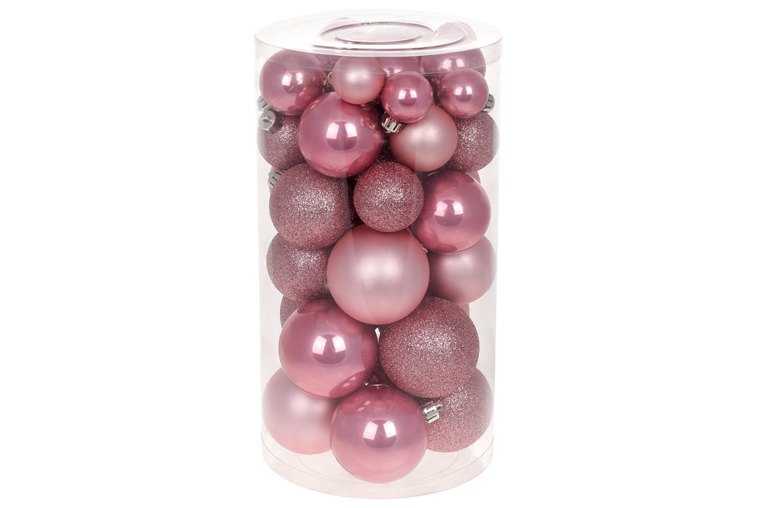 Набір ялинкових куль, колір - рожевий фламінго, 40шт - 6см, 5см, 4см, 3см: 4шт - перламутр, 3шт - матовий, 3шт - гліттер для кожного розміру