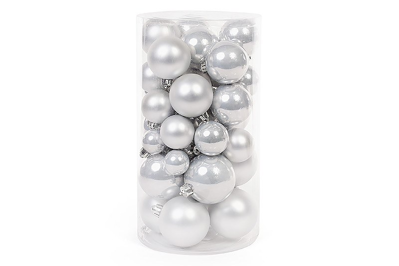 Набір ялинкових куль, колір - срібло, 40шт - 6см, 5см, 4см, 3см: 5шт - матовий, 5шт - перламутр для кожного розміру