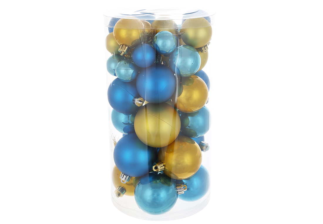 Набір ялинкових куль, колір - синій із золотою, 40шт - 6см, 5см, 4см, 3см: перламутрові мікс з матовими кулями
