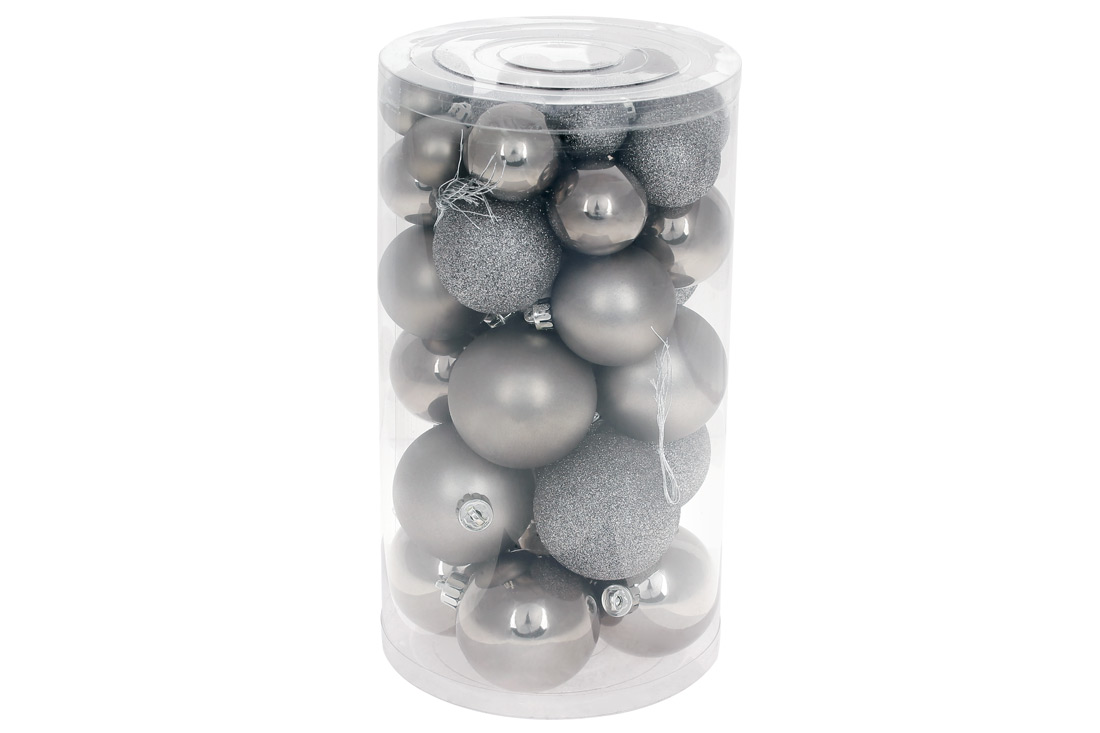 Набір ялинкових куль, колір - теплий сірий, 40шт - 6см, 5см, 4см, 3см: 4шт - перламутр, 3шт - глітер, 3шт - матовий для кожного розміру