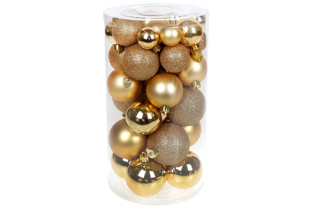 Набір ялинкових куль, колір - золото, 40шт - 6см, 5см, 4см, 3см: 4шт - глянець, 3шт - матовий, 3шт - гліттер для кожного розміру