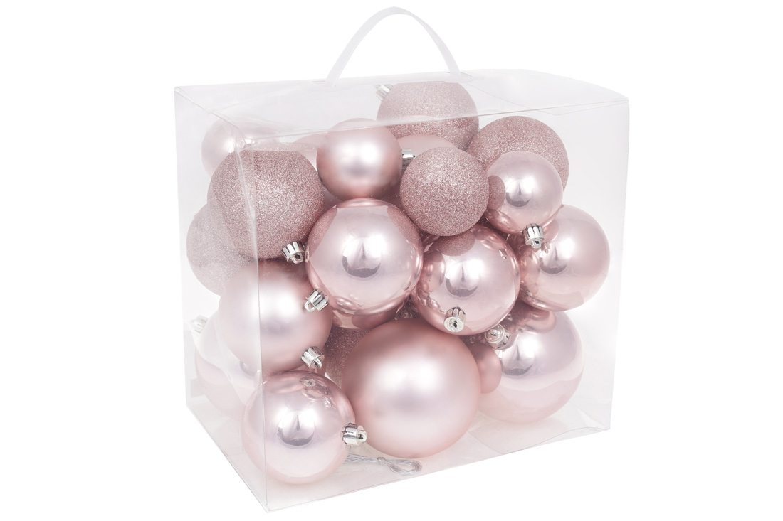 Набір ялинкових куль "Легкий рум'янець" 26 шт, 10см, 8см, 6см: перламутр, матовий, гліттер