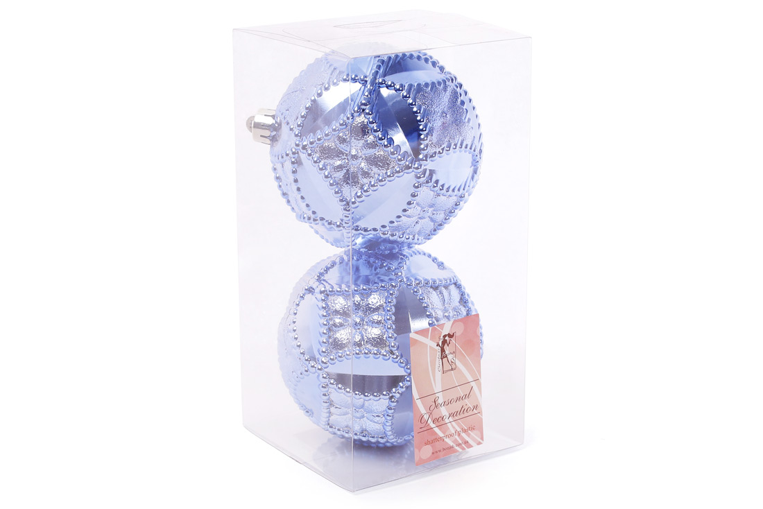Набір ялинкових куль з рельєфом 10 см, колір - місячний синій, 2шт: глянець
