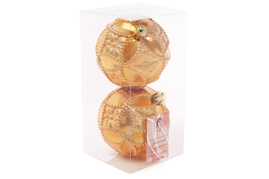 Набір ялинкових куль з рельєфом 10см, колір - охра, 2 шт: перламутр