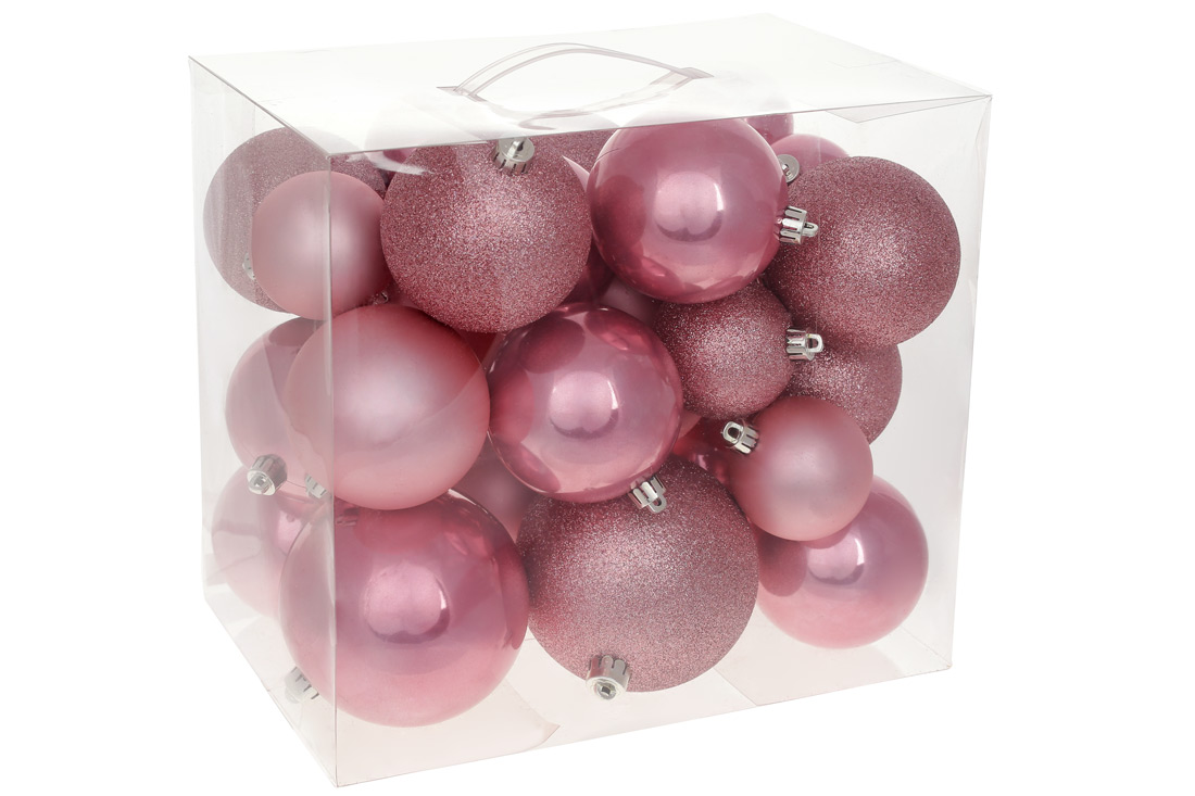 Набір ялинкових куль "Танець фламінго" 26 шт, 10см, 8см, 6см: перламутр, матовий, гліттер