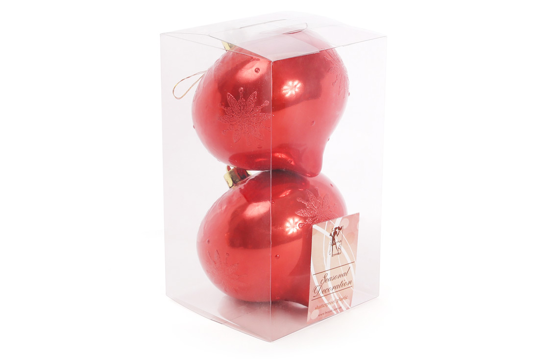 Набір ялинкових прикрас 10см, колір - червоний, 2шт, перламутр