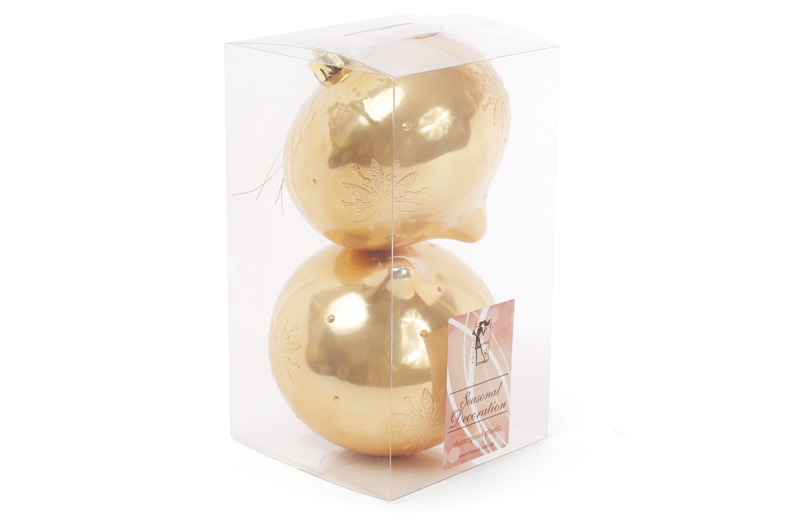 Набір ялинкових прикрас 10см, колір - яскраве золото, 2шт, перламутр