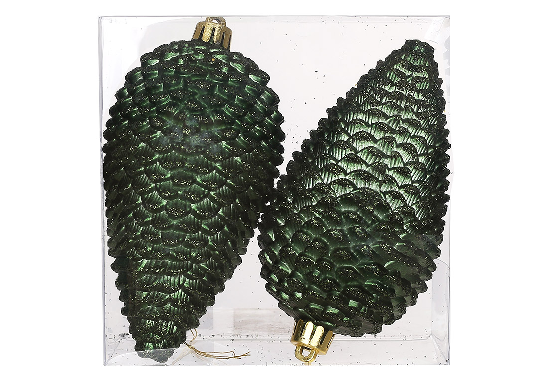 Набір ялинкових прикрас Шишки 12 см, колір - зеленої хвої, 2шт - матовий з гліттером