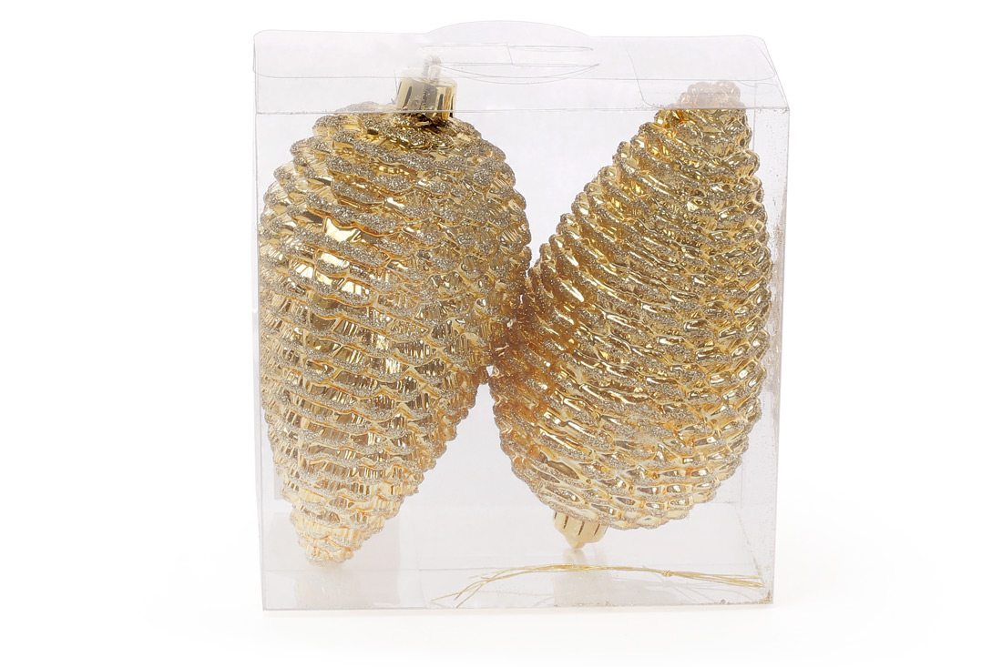Набір ялинкових прикрас Шишки 12см, колір - яскраве золото, 2 шт. глянець з гліттером