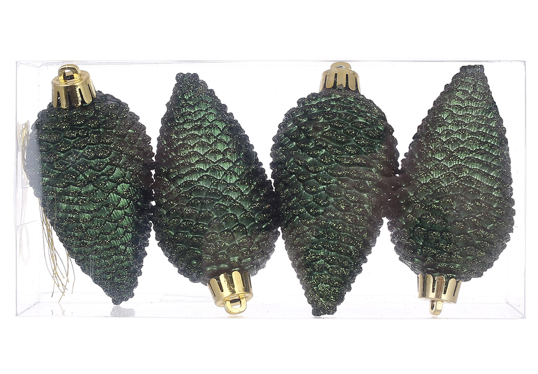 Набір ялинкових прикрас Шишки 8см, колір - зеленої хвої, 4шт - матовий з гліттером
