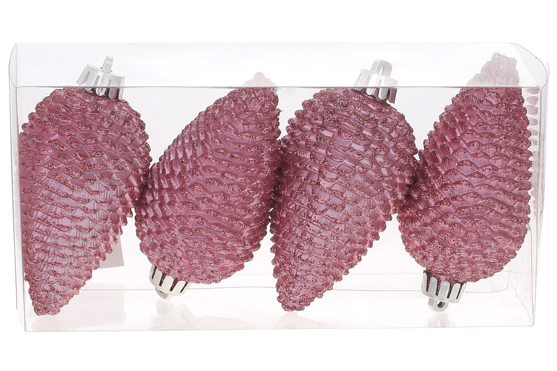 Набір ялинкових прикрас Шишки, колір - рожевий фламінго, 8см, 4шт, матовий з глітером