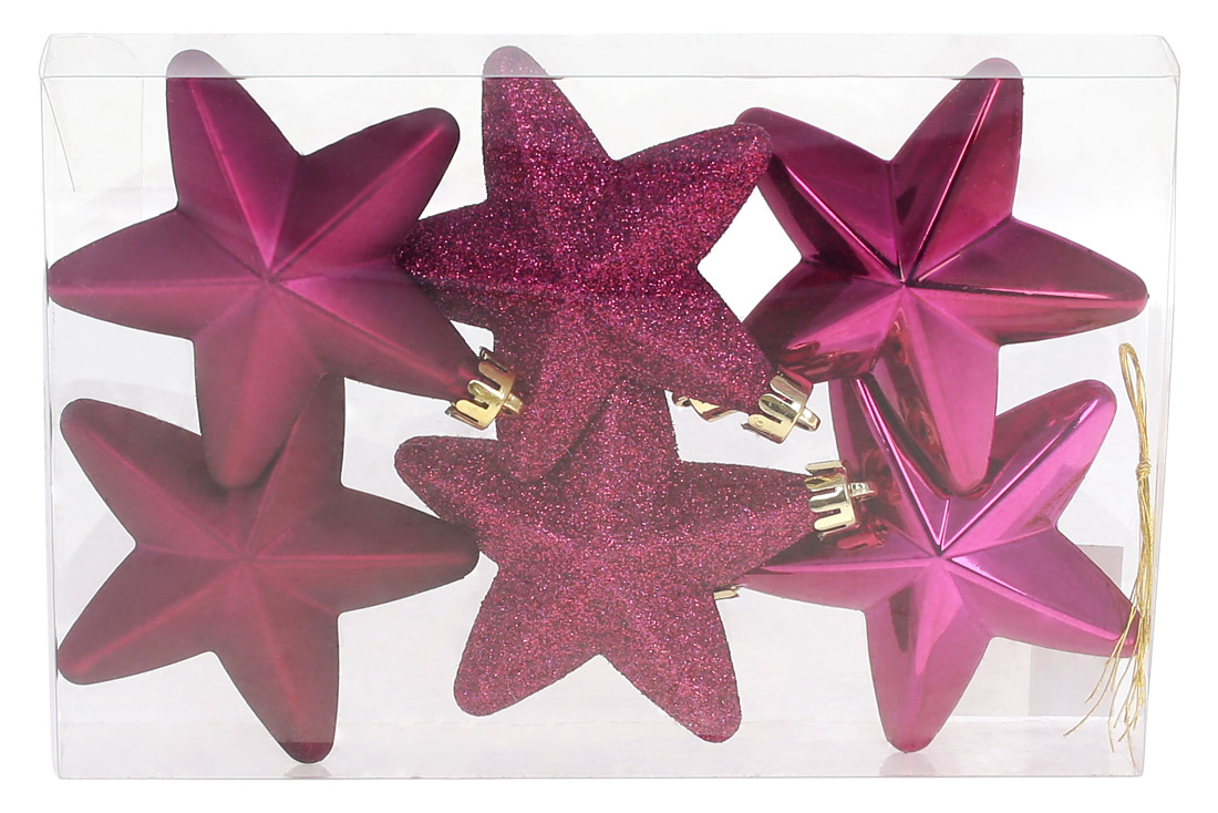 Набір ялинкових прикрас Зірки 7.5см, колір - магнолія, 6шт; глянець, матовий, гліттер - по 2шт