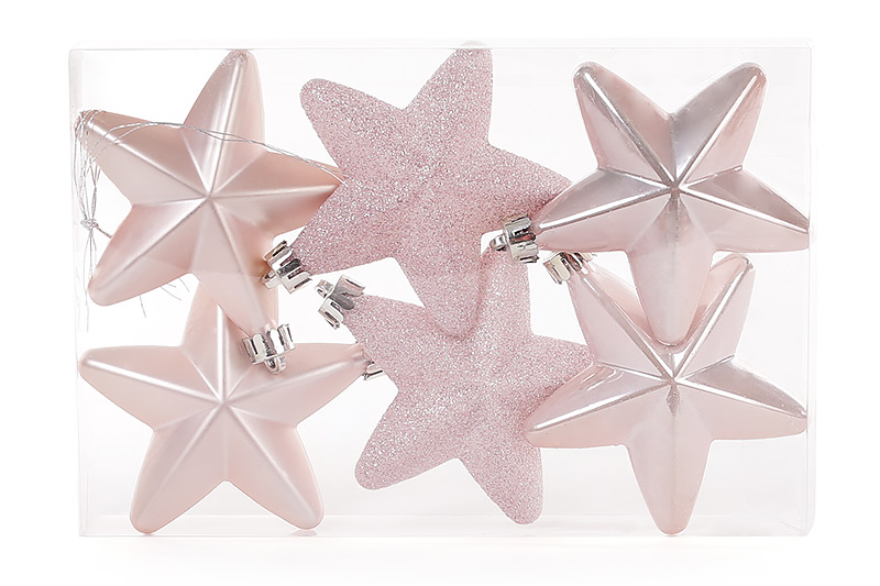 Набір ялинкових прикрас Зірки 7.5см, колір - рожевий, 6шт; перламутр, матовий, гліттер - по 2шт