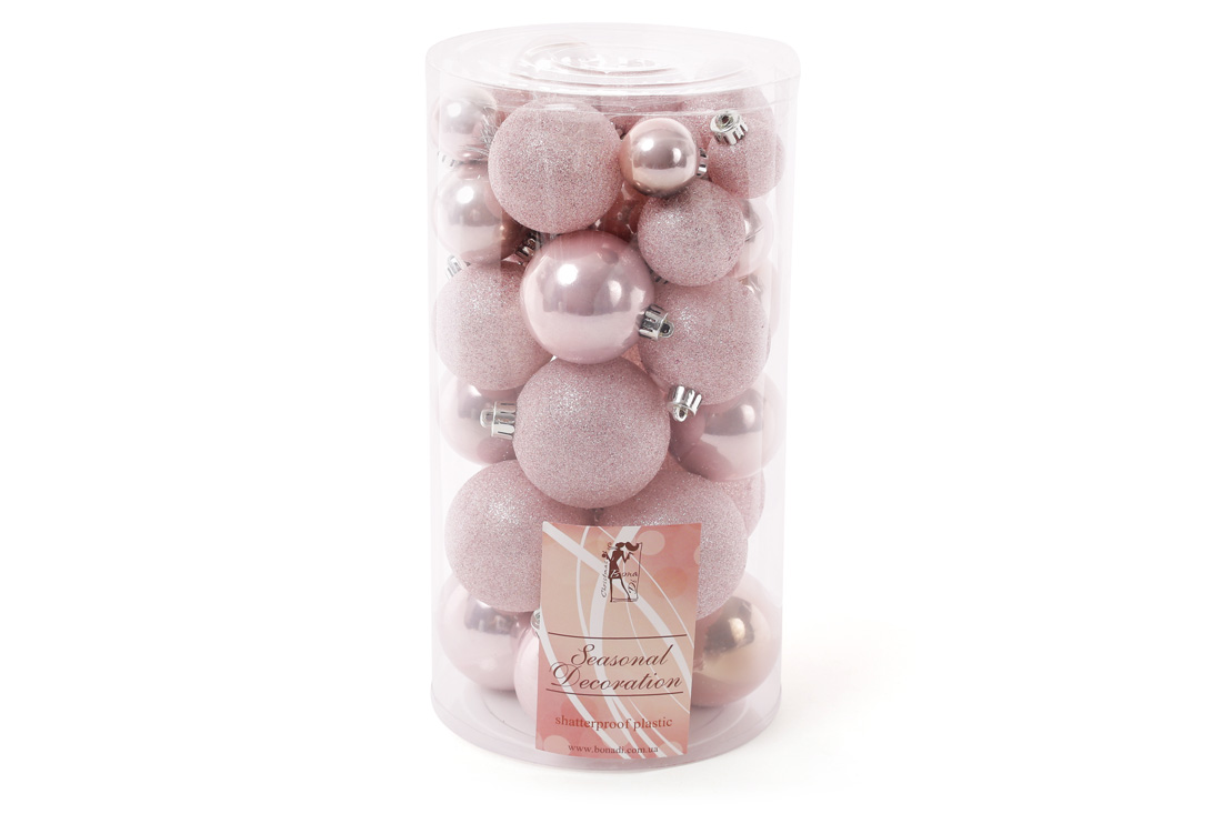 Набір ялинкових куль, колір - рожевий, 40шт - 6см, 5см, 4см, 3см: 5шт - матовий, 5шт - перламутр для кожного розміру