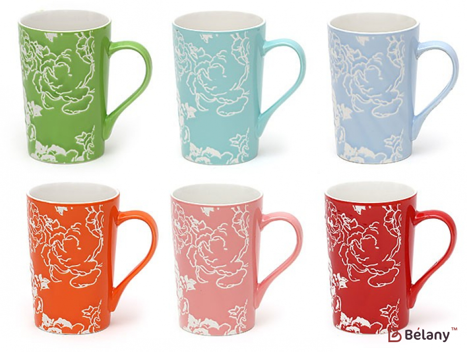 Набор фарфоровых кружек, 400 мл " Rose "разноцветные