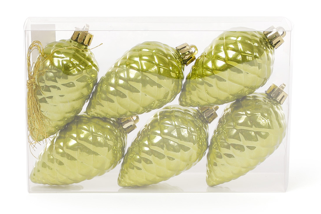 Набір шишок, 6см, колір - оливковий зелений, перламутр, 6шт