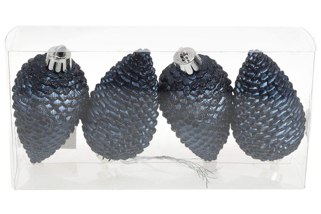 Набір шишок, 8см, колір - північно-синій, матовий з гліттером, 4шт