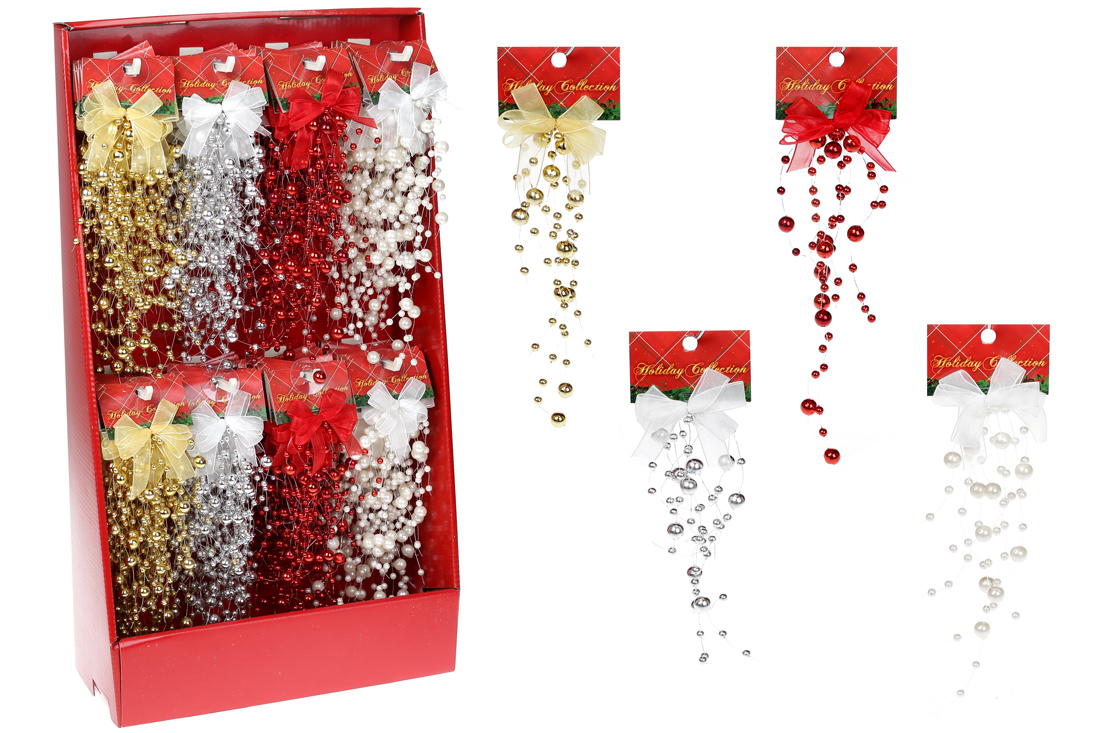 Новорічна прикраса Бант 20.3см з підвісками з бусин, 4 дизайни